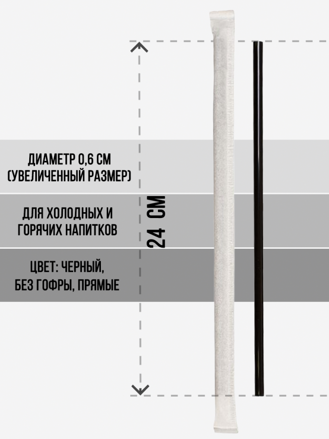 Трубочки прямые 6х240 черные в инд. упаковке 125 шт/уп.