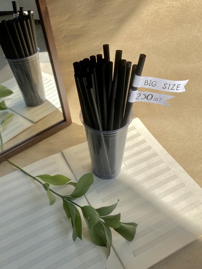 Трубочки прямые 8х240 черные 250 шт/уп.
