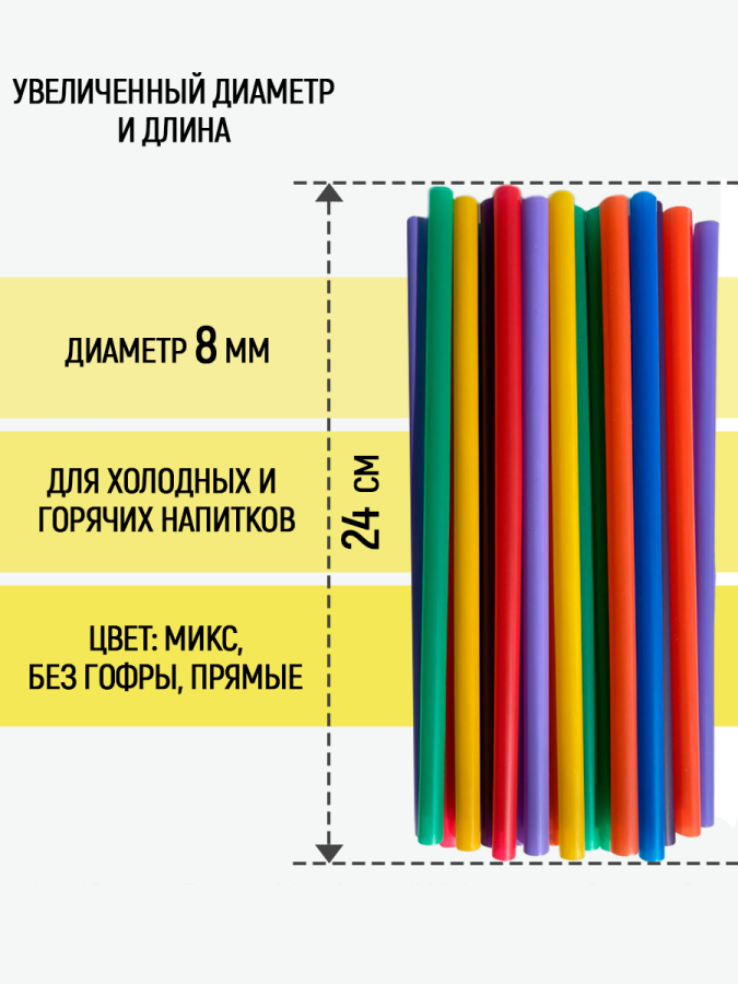 Ваша вечеринка будет лучшей с нашими трубочками для коктейлей! Количество трубочек может варьироваться +-10 штук-их упаковка на производстве осуществляется машинным способом. Если вы планируете устроить веселье в баре или на пикнике-наши трубочки для напитков с изгибом станут ярким акцентом вашего мероприятия. У нас есть широкий ассортимент прямых соломок, чтобы удовлетворить любые потребности. Наши широкие и прочные трубочки позволяют наслаждаться густыми и кремовыми коктейлями, смузи или мороженым без проблем, т.к. они достаточно толстые. Трубочки с гофрой идеально подходят для молока или кофе, чая, воды и прочих напитков. Мы предлагаем термостойкие трубочки, которые станут прекрасным дополнением к вашему домашнему столу или бару. Они украшают подачу алкогольных и безалкогольных напитков. Наши трубочки для коктейлей одноразовые, что экономит ваше время и силы на мойку и хранение. Выберите свой стиль, цвет и форму, и наслаждайтесь прохладной водой, горячим чаем или холодными напитками со льдом в компании друзей и близких.