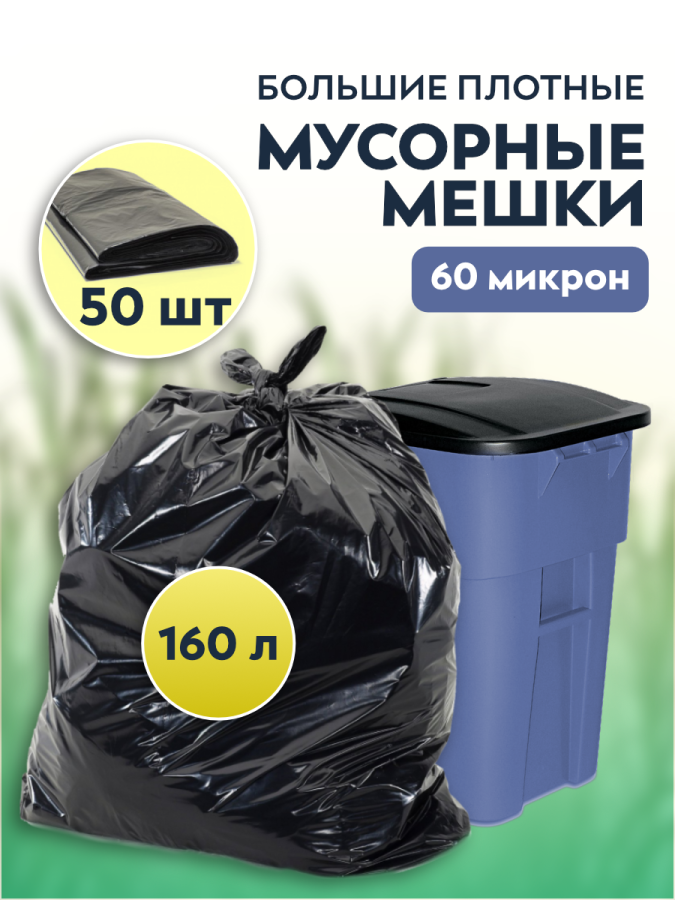 Прочные мусорные мешки ПВД объемом 160 литров, размеры 90х110 см, плотность 60 мкм. Идеальны для коммерческого использования — офисов, кафе, производств. Гарантия качества и быстрая доставка по России.